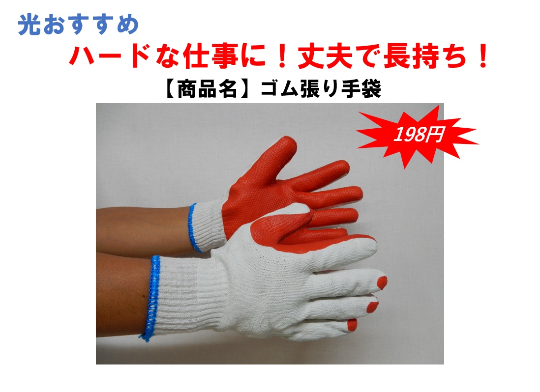 ゴム張り手袋。ハードワークに強くて丈夫な手袋を!