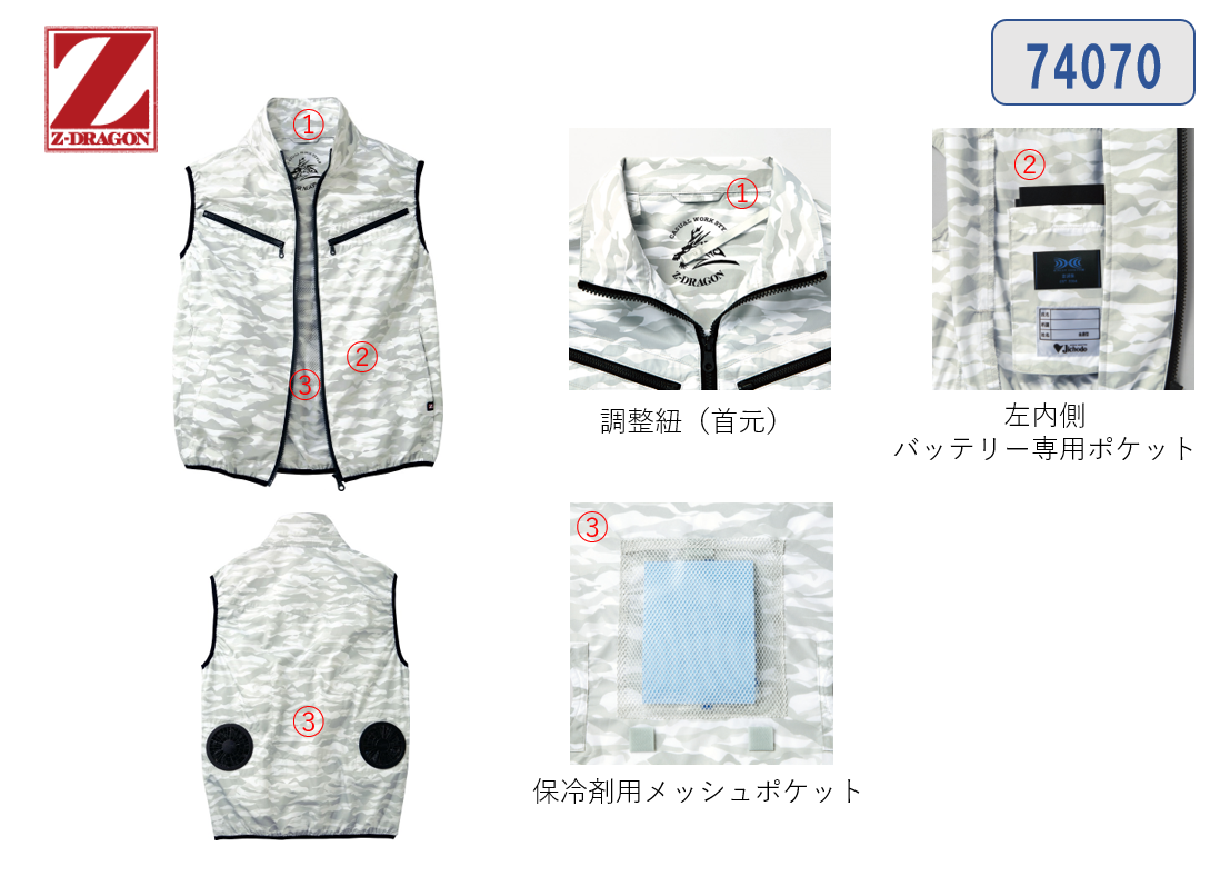 空調服ベスト74070。保冷剤用ポケットの付いた優れもの!