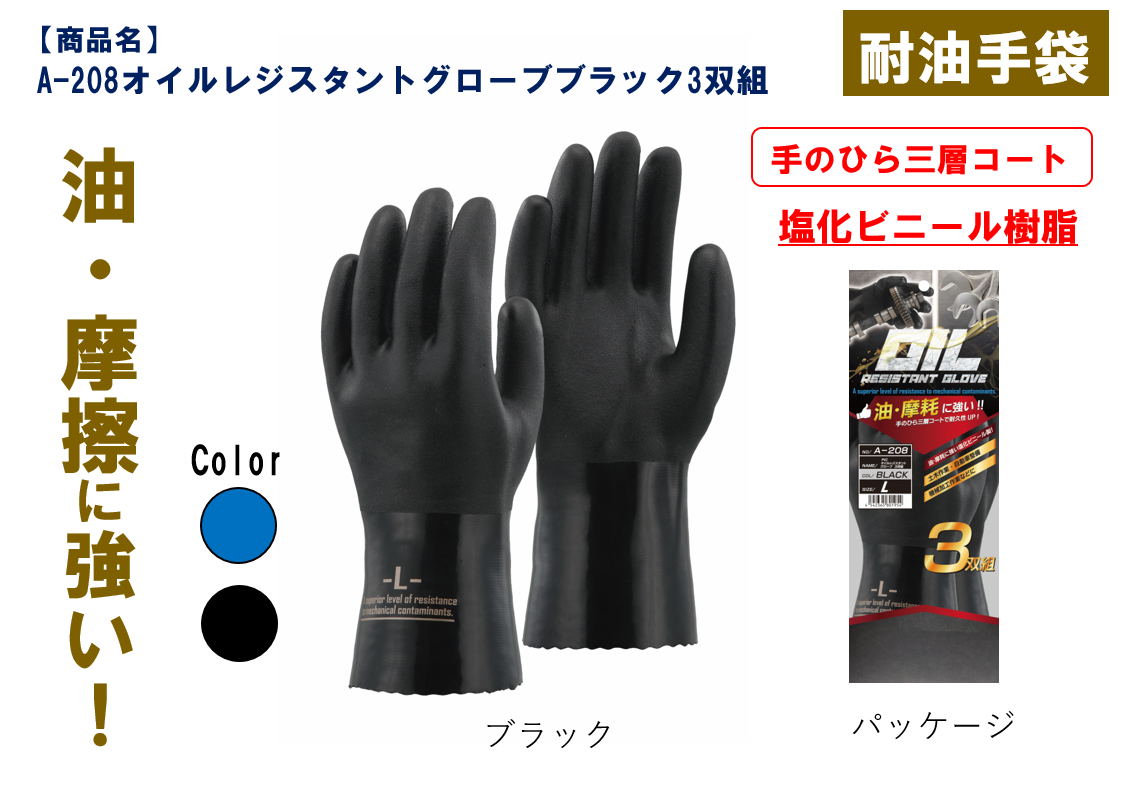 【商品説明】油・摩耗に強い耐油手袋。自動車整備作業・土木作業や機械加工作業などに使われています。3層構造になっており、1層目は肌に優しい綿100%メリヤス生地、2層目はPVCコートで耐油性と柔軟性を保ち、3層目の手袋表面は細かい凹凸で滑り止め加工を施しています。弊社おすすめ商品です!