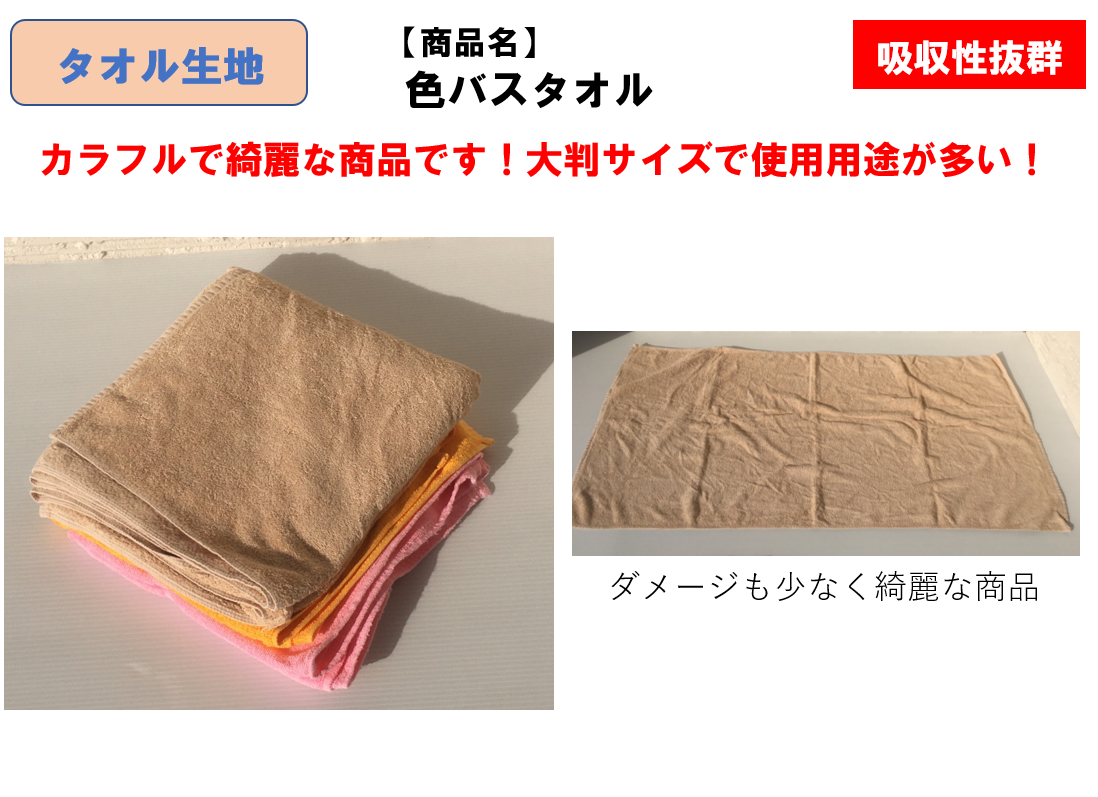 ・色のバスタオルを梱包しウエスとしてリサイクル活用した商品