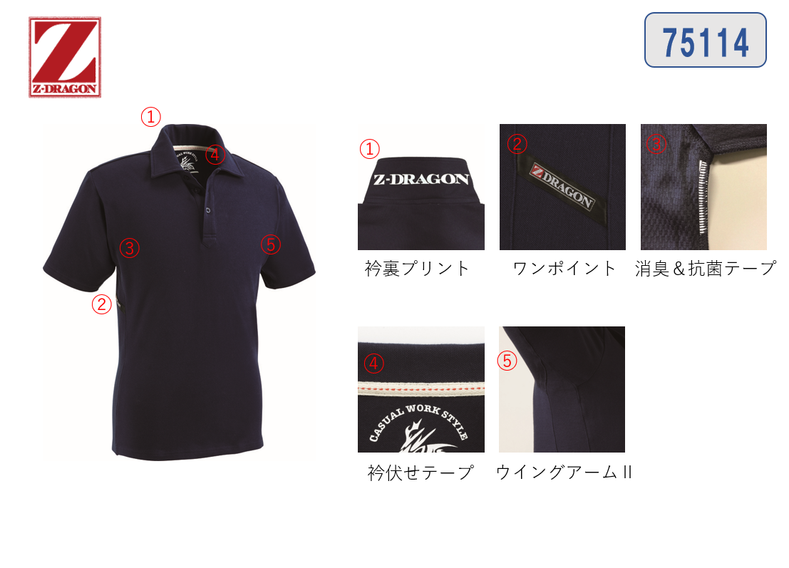 【商品名】Z-DORAGON75114ストレッチ半袖ポロシャツ