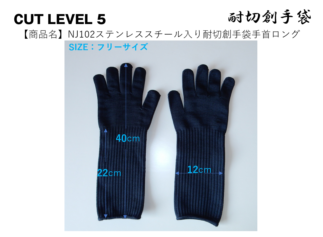 NJ102ステンレススチール入り耐切創手袋手首ロング
