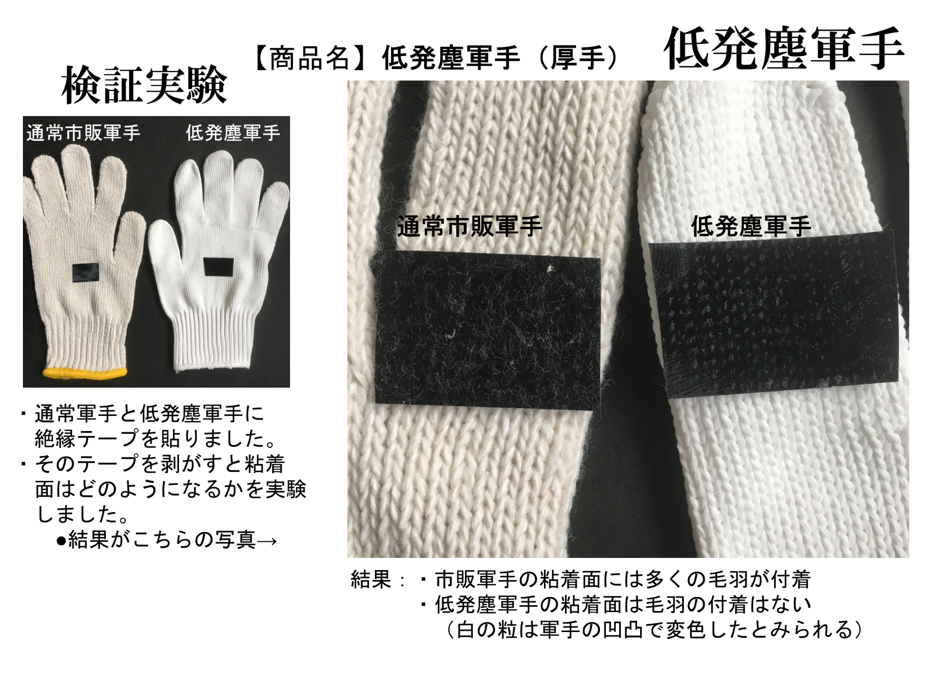 ・製品等に作業軍手等の毛羽が付着するのを防ぐ
