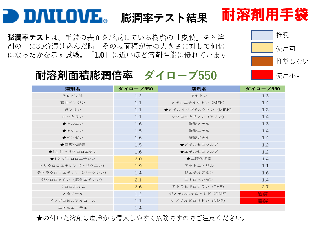 【商品説明】シンナー等に微量の酸(10%未満)が含まれていても使用可能な重作業向けの溶剤手袋。ほとんどの有機溶剤に溶けることがなく、使用後の変形や硬化がありません。印刷業や塗装業、部品洗浄の現場などで使われています。