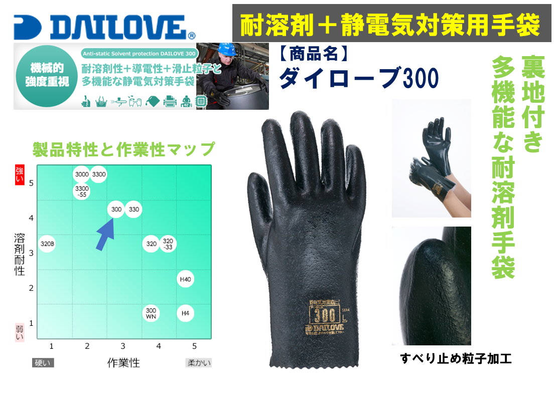 【商品説明】機械的強度に優れた静電対策手袋で耐溶剤性も兼ね備えています。導電性を持たせた特殊なウレタンゴムを使用し静電気対策が可能です。手袋表面に滑り止め粒子加工を施し、製品等の落下を防ぎます。可燃性の溶剤を取り扱う際に利用されたり、半導体などの静電気を嫌う現場で使用されています。